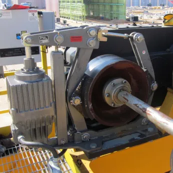 The Port Crane industry requires many brake systems on the Crane Hoists and the Drive systems that move the crane along the rail. In addition to the brake systems, a method of clamping the rails is required so that no movement occurs in the event of high wind forces. On hoists, the safest operation is with a dual braking method. The brakes should be mounted to the high-speed side of the gearbox and directly to the cable drum on the low speed side of the gearbox in case of a broken shaft or gears.